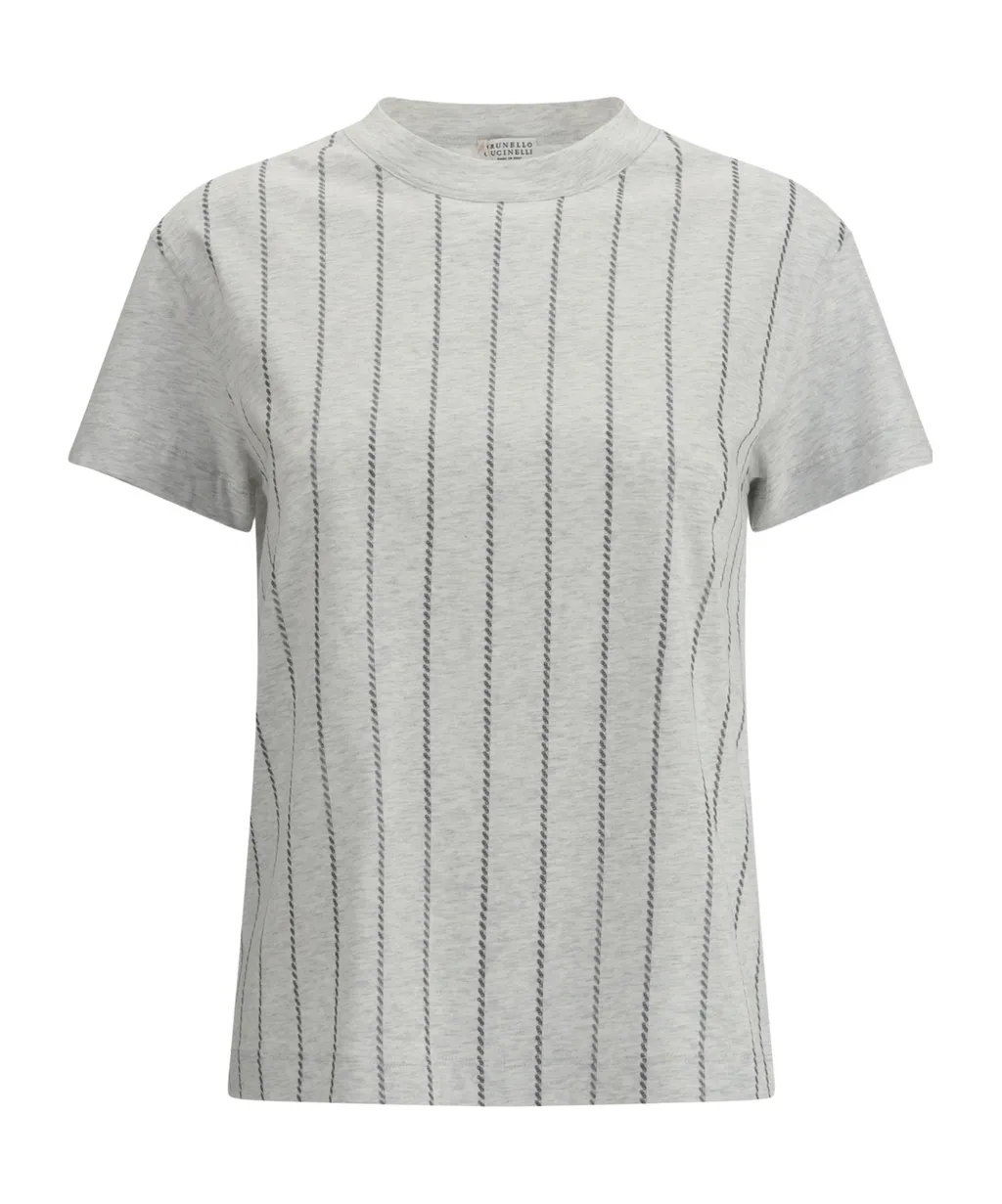 Brunello Cucinelli Pinstripe Short-Sleeve T-Shirt | Wardatrobe