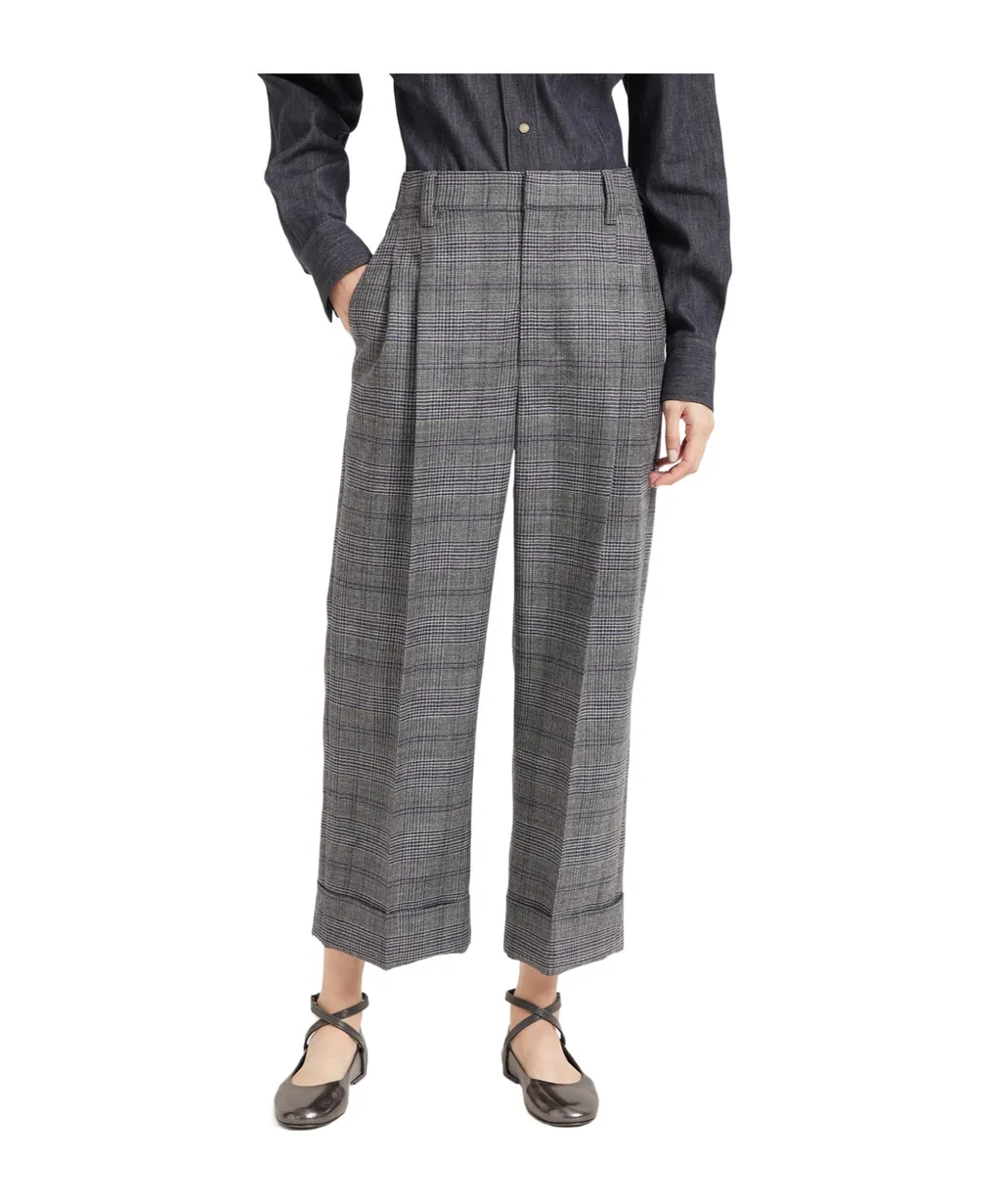 Brunello Cucinelli Prince Of Wales Cropped Trousers | Wardatrobe