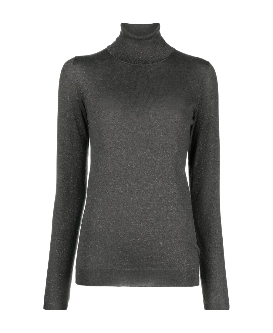 A cashmere jumper featuring high lapels and long sleeves. It is a pullover style.