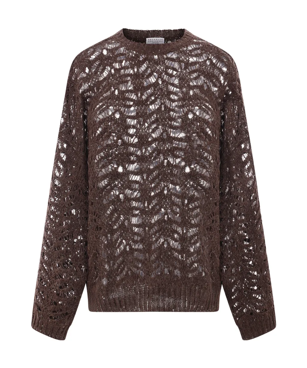 Made of hollow knit, full body sequins, round neck, long sleeves, ribbed edges. Unclosed (pullover). Regular fit.