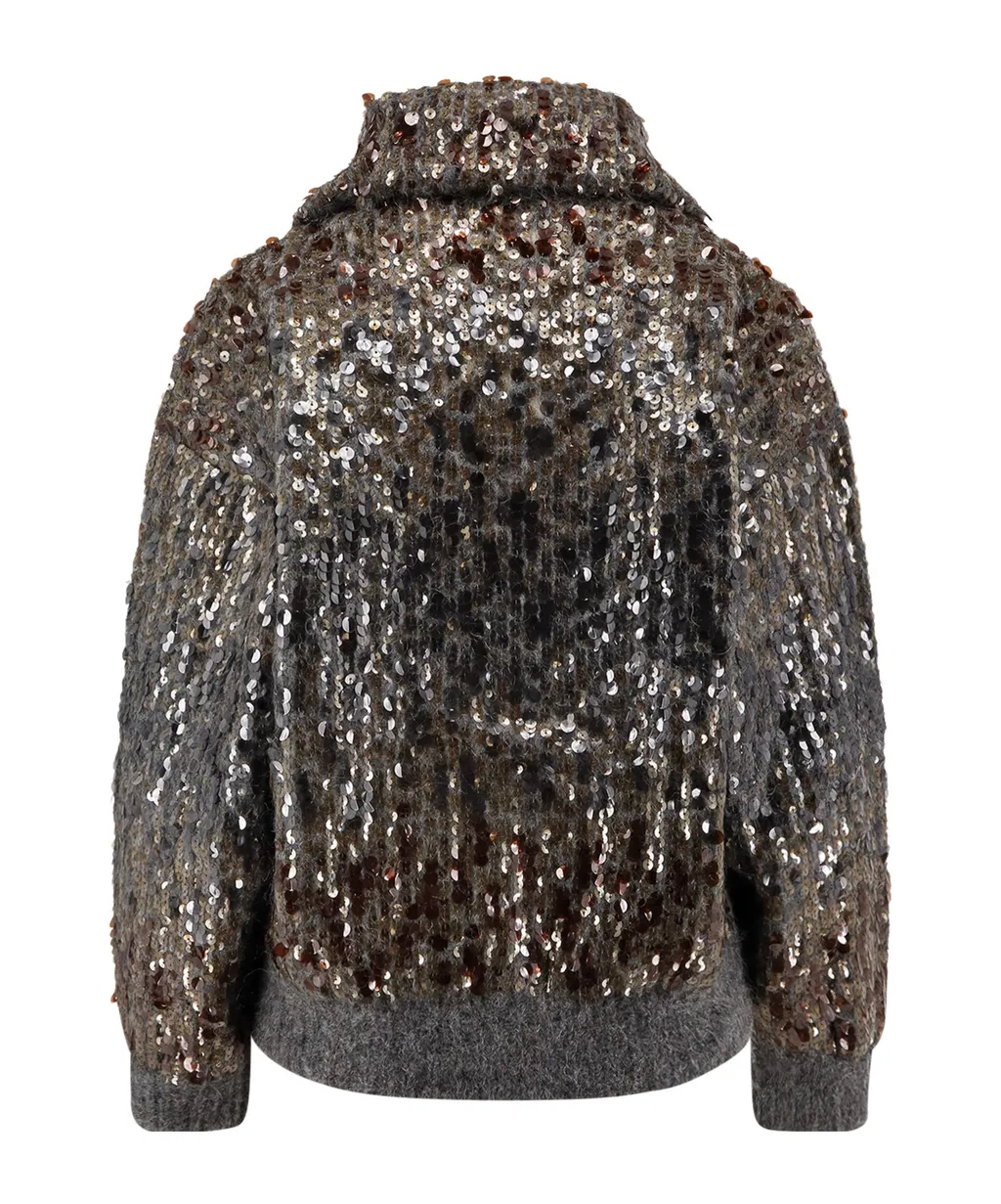 Brunello Cucinelli Sequin Embellished Zipped Cardigan | Wardatrobe