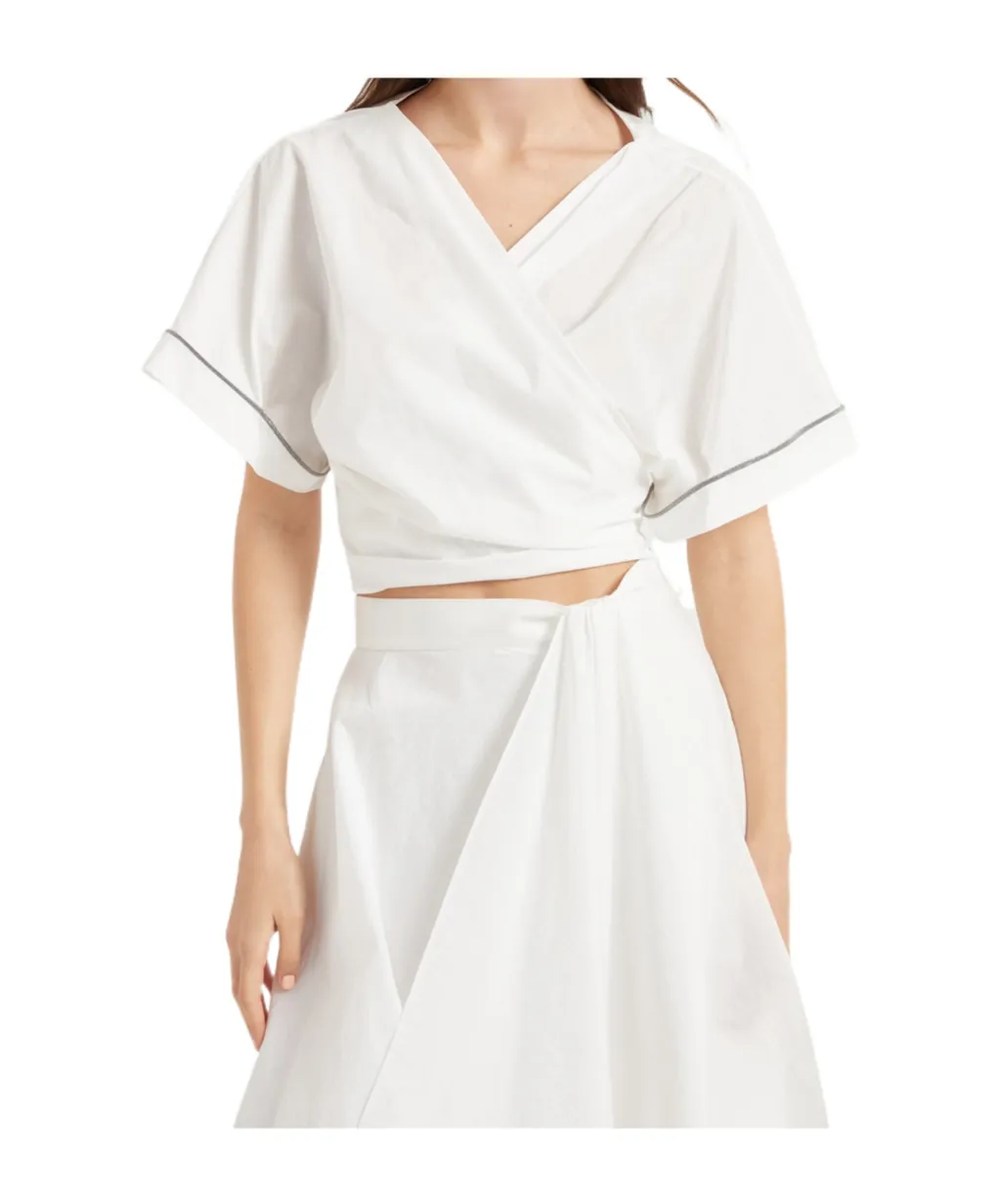 Brunello Cucinelli Shiny Trim Poplin Kimono-Style Top | Wardatrobe