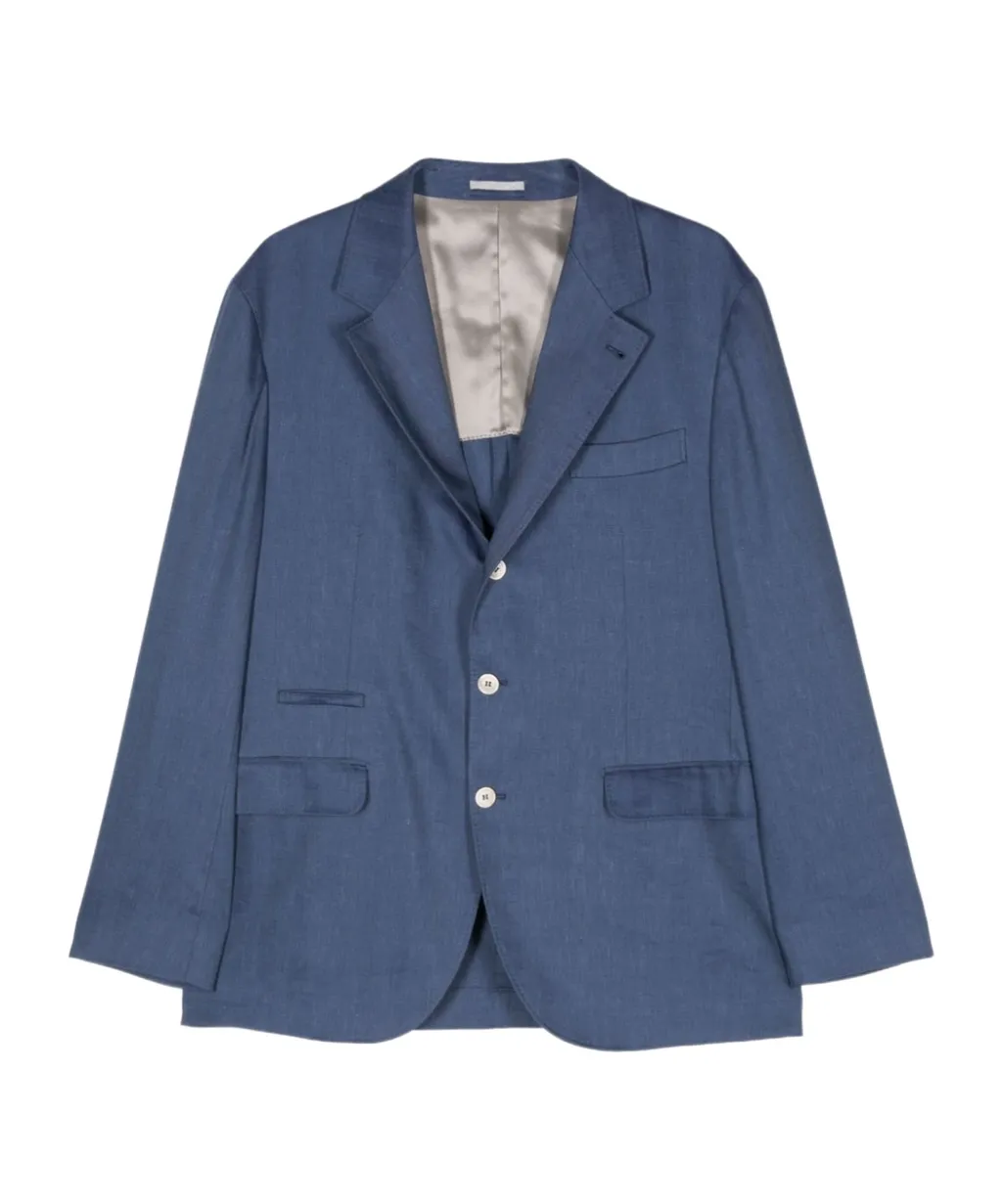 DescriptionSingle-breasted blazer with front buttons, flat lapped collar, flat pocket on the chest, two front lid pockets, long sleeves, buckle cuffs, british back slits, and multiple built-in pockets. Single row buttons. Regular fit.
