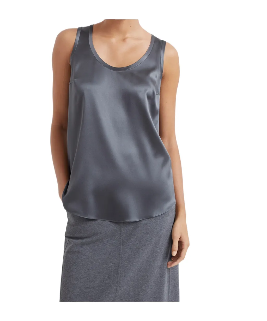 Sleeveless silk vest with a round neck. It is reversible and can be worn on both sides. Pullover style with a regular fit.
