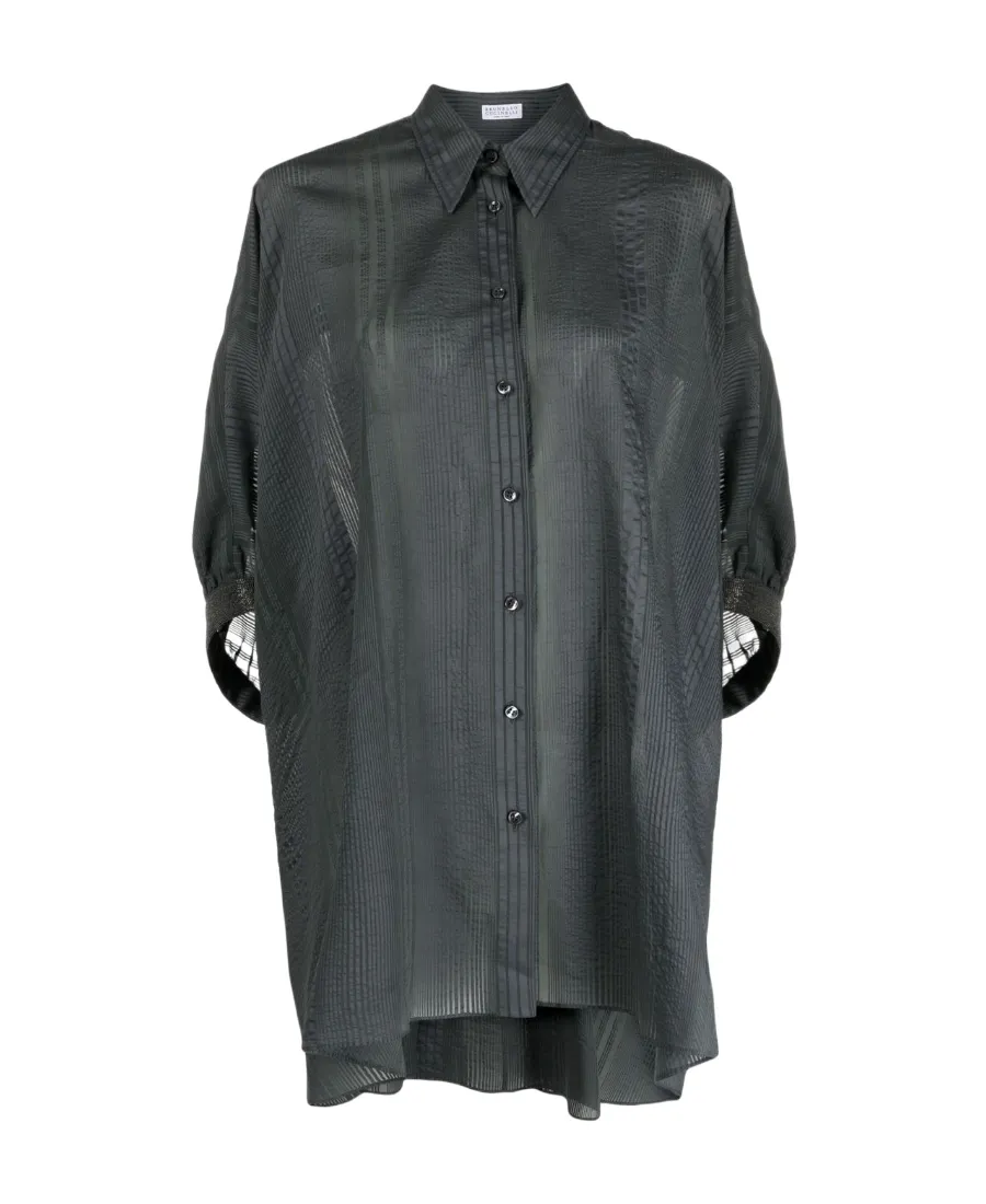 Brunello Cucinelli Striped Half-Sleeve Draped Shirt | Wardatrobe
