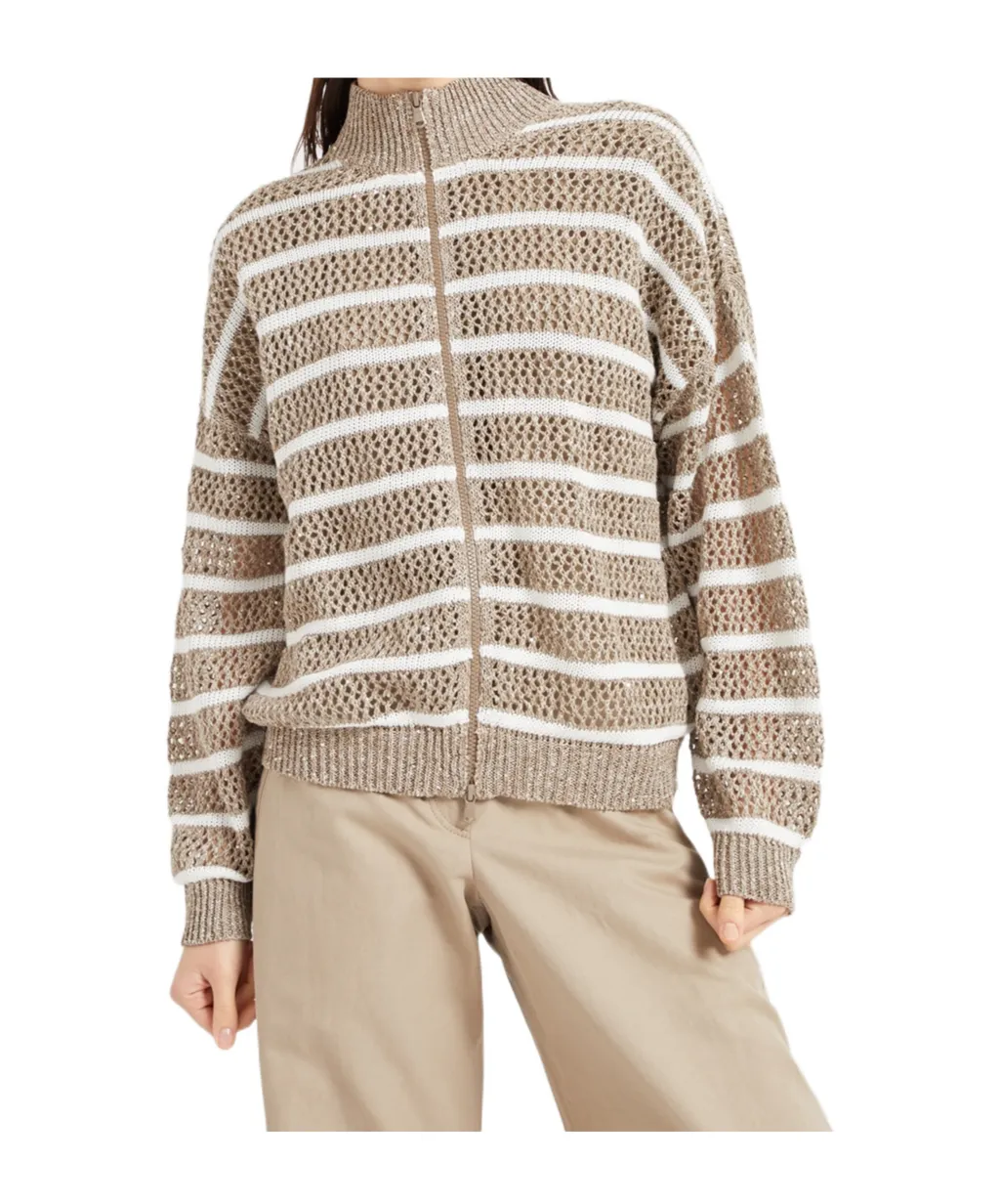 Brunello Cucinelli Striped Zip-Up Knitted Cardigan | Wardatrobe