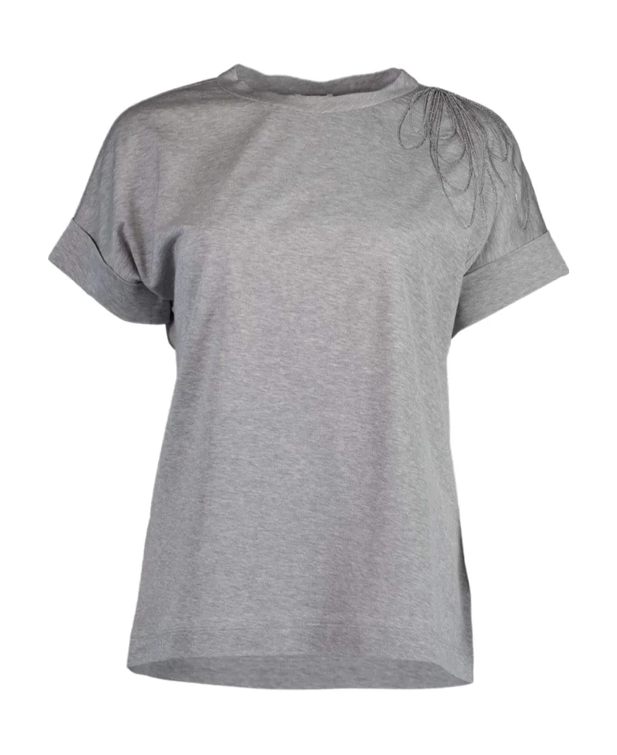 Brunello Cucinelli T-Shirt With Embroidered Detail At Shoulder | Wardatrobe
