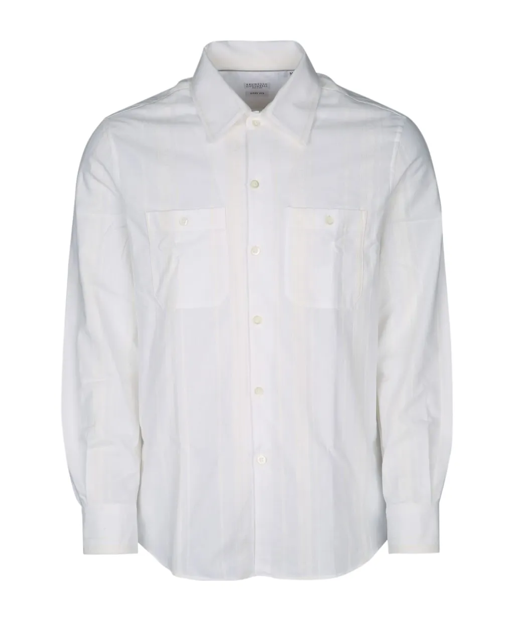 Brunello Cucinelli Tone-On-Tone Jacquard Striped Easy Fit Shirt | Wardatrobe