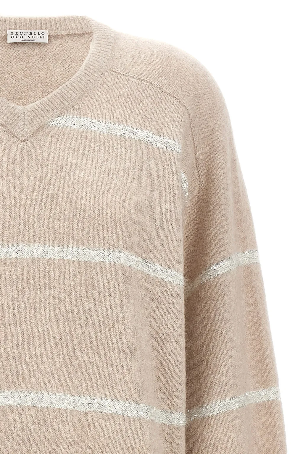Brunello Cucinelli V-Neck Striped Knitted Jumper | Wardatrobe