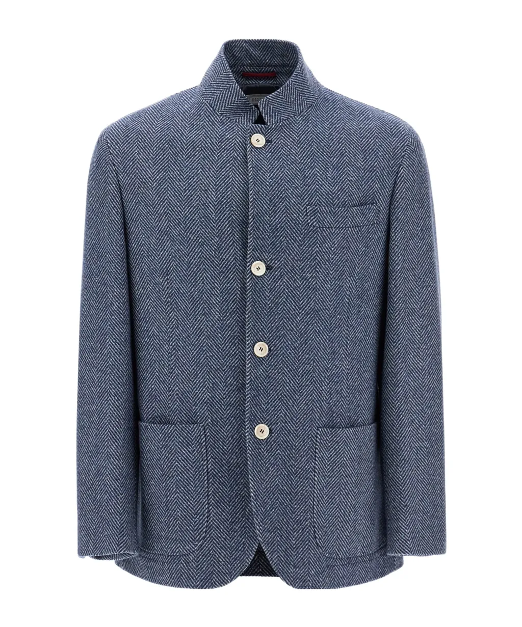 Brunello Cucinelli Water-Resistant Herringbone Button-Up Jacket | Wardatrobe