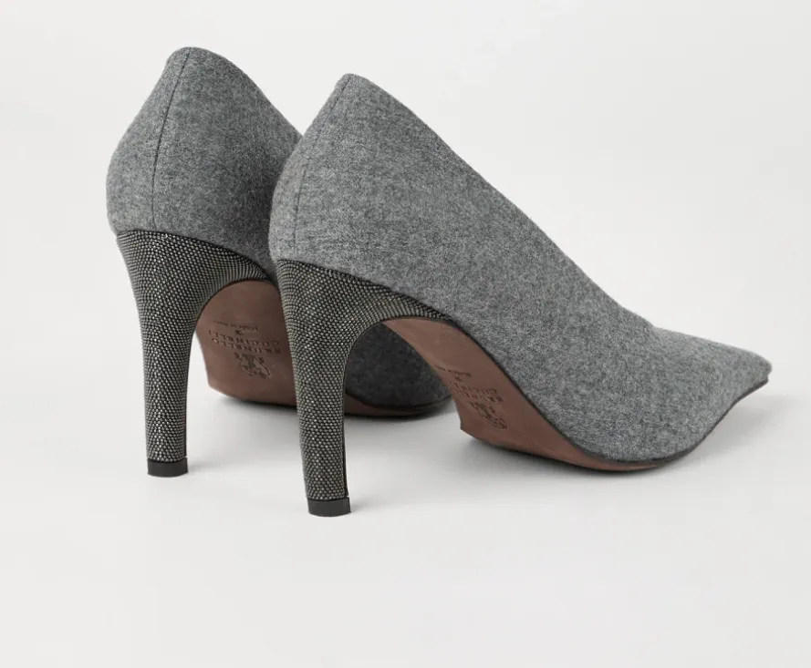 Brunello Cucinelli Water-Resistant Virgin Wool Flannel Heels With Precious Details | Wardatrobe