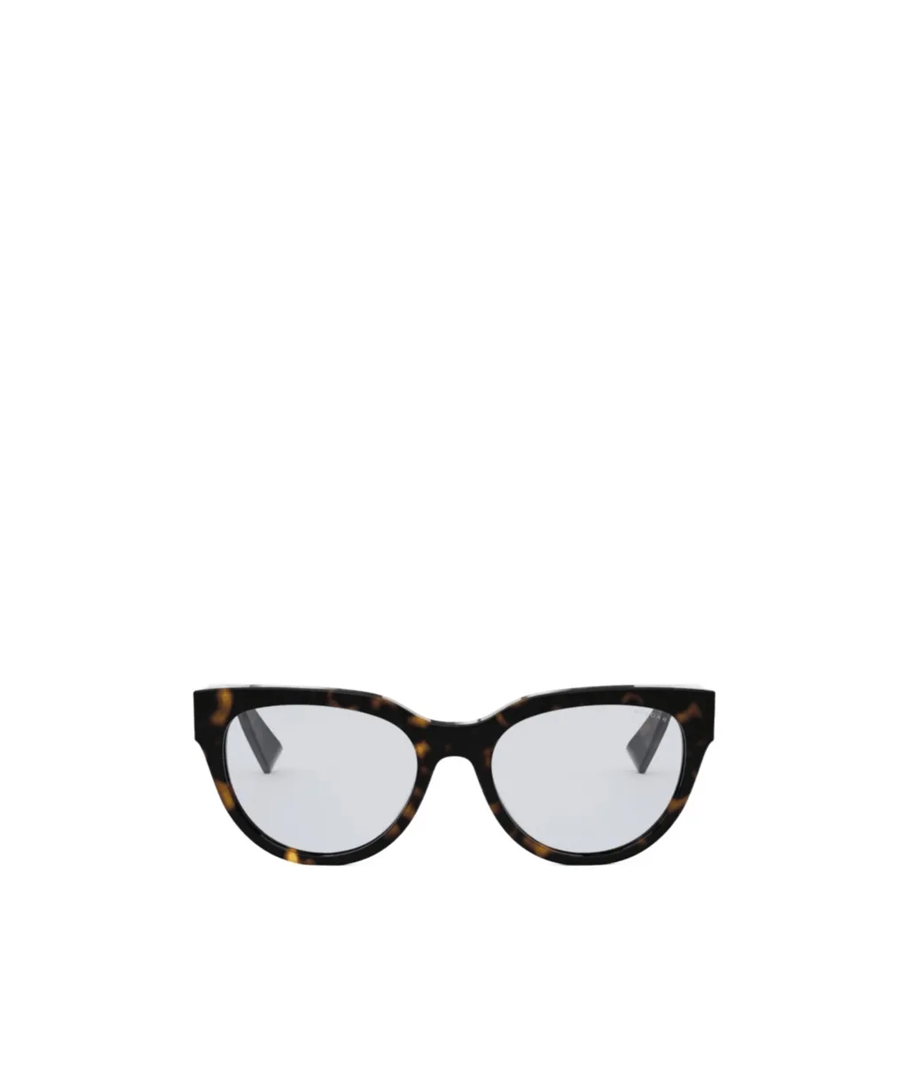 Acetate fibre cat-eye glasses in a tortoiseshell pattern. Geometric flat lenses.