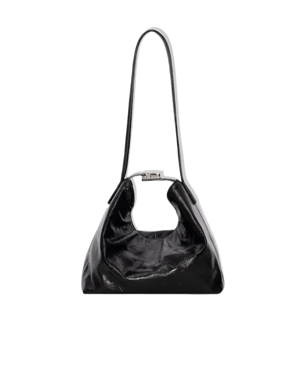 Smooth lambskin shoulder bag in black. Magnetic closure. Fixed shoulder straps.