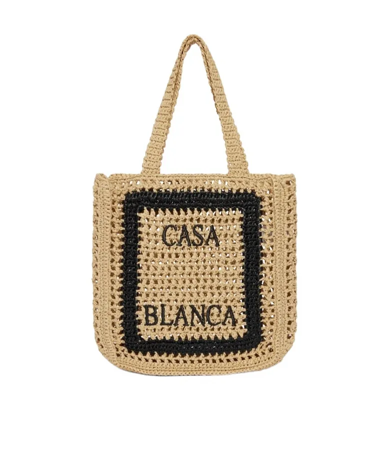DescriptionThis raffia tote bag features a woven construction with a contrasting black frame and casablanca's signature logo. It includes shoulder straps for versatile carrying options.