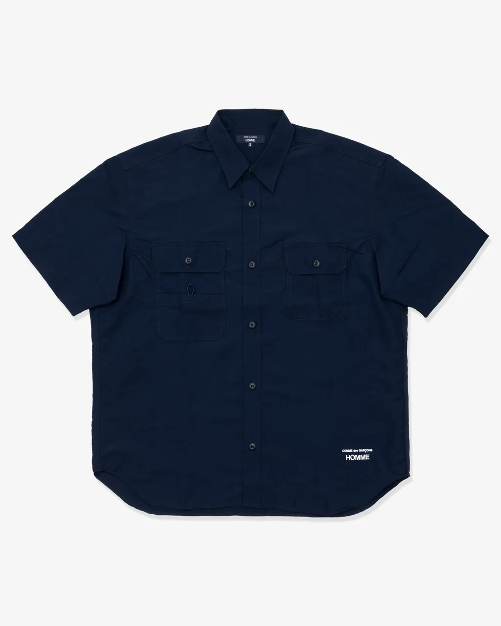 This cdg homme shirt is made from nylon tussah. It features a relaxed fit with two chest pockets and a button-down closure.