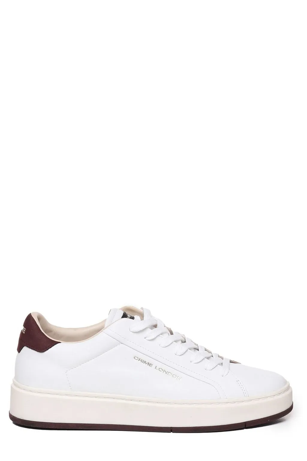Leather sneakers in white with a burgundy heel tab. Featuring a lace-up closure and a platform sole.