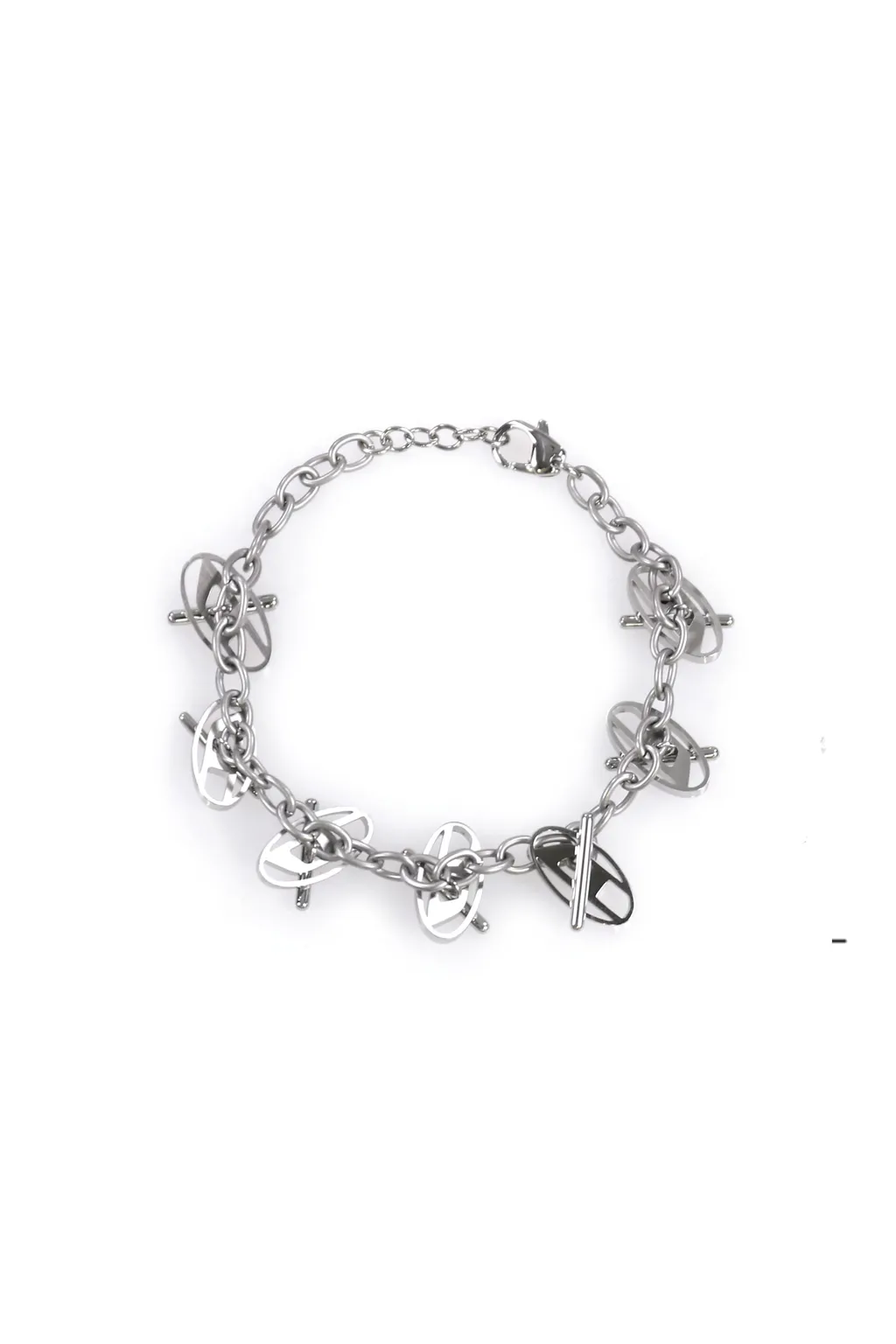 Silver-tone bracelet with d motif charms. Features a lobster clasp closure.