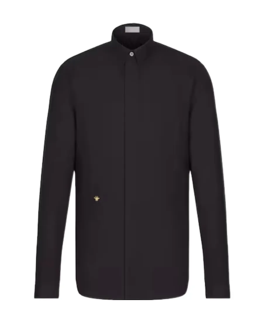 DescriptionBlack shirt with gold bee embroidery on the front. Features a hidden button placket, mother-of-pearl buttons with dior logo, and iconic stitch on the back. The hemline is curved. Regular fit with single row buttons.