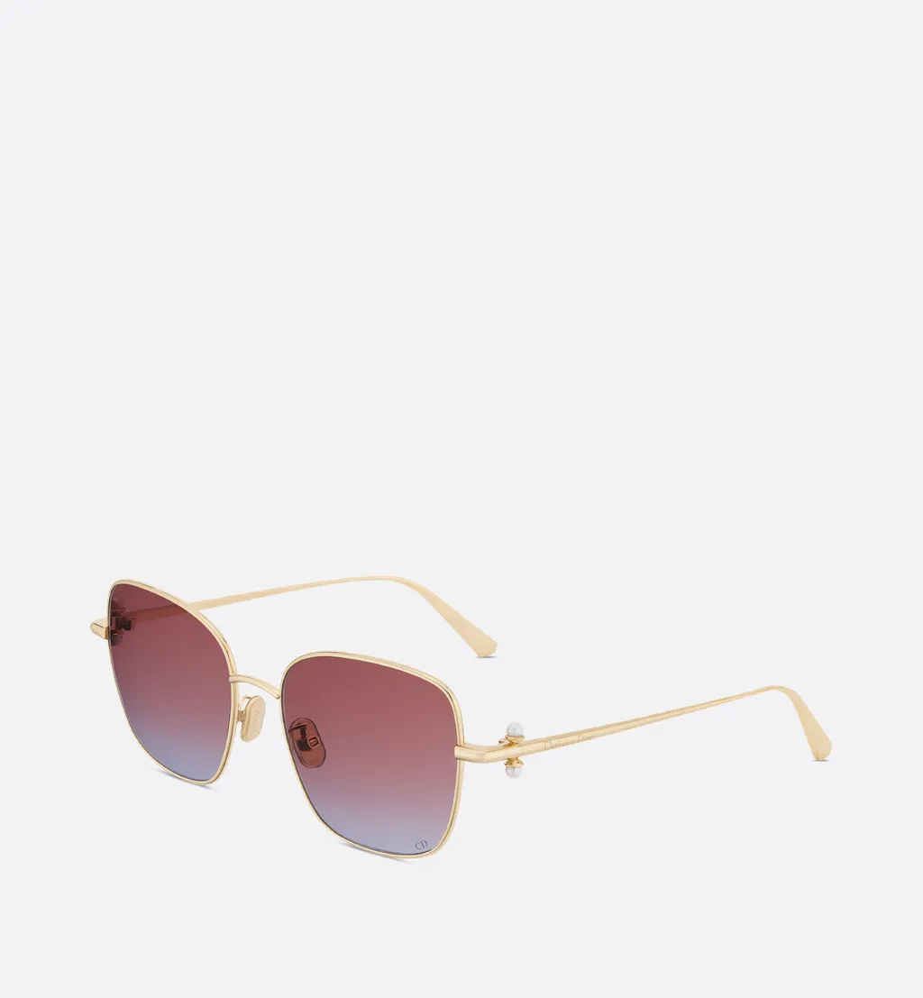 DescriptionSquare sunglasses in gold-finish metal with a hinge adorned with white resin pearls. The temples are embellished with the christian dior signature. Completed by brown-to-indigo gradient lenses.