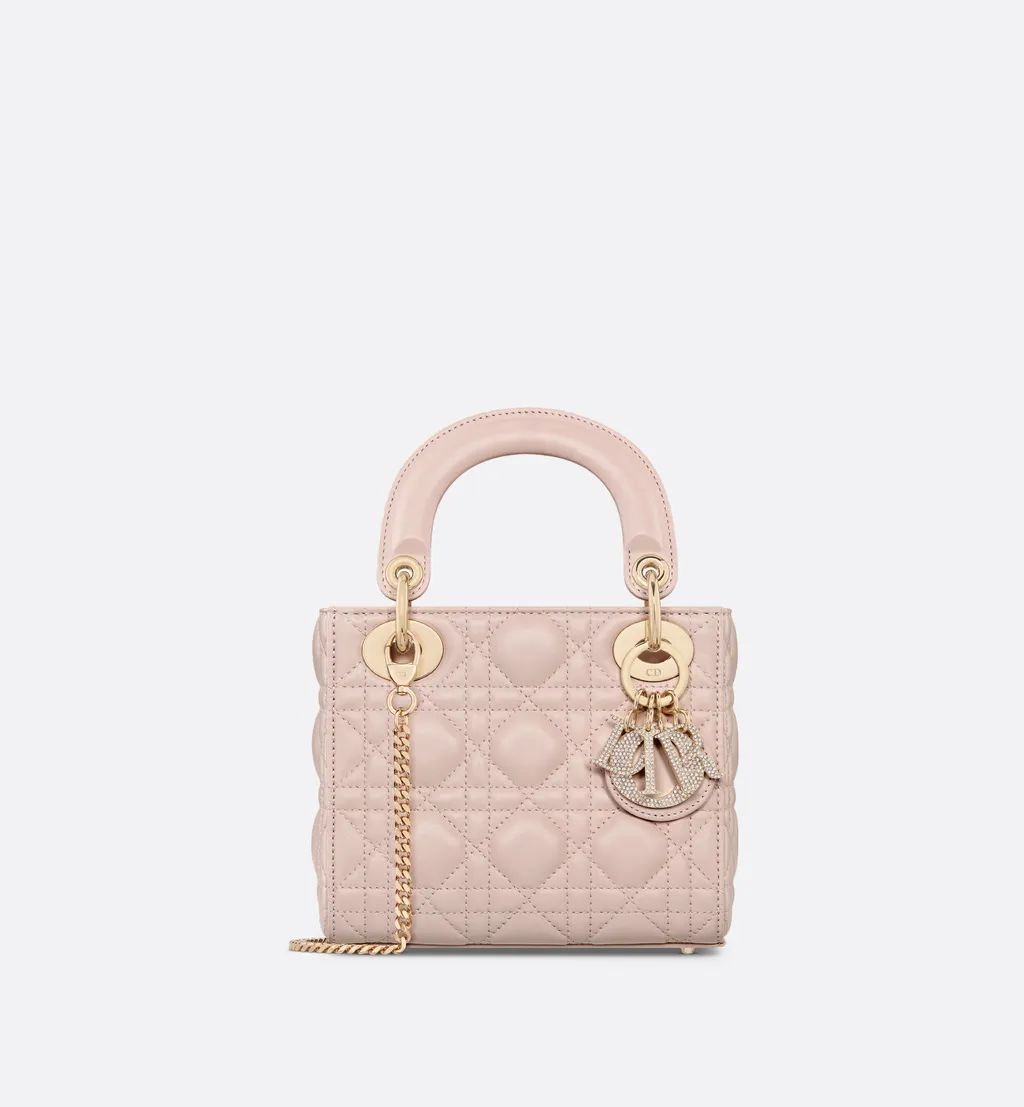 DescriptionThe lady dior bag is crafted in powder pink lambskin with cannage stitching. It features d.i.o.r. Charms. The bag can be carried by hand or worn crossbody with its removable chain shoulder strap.