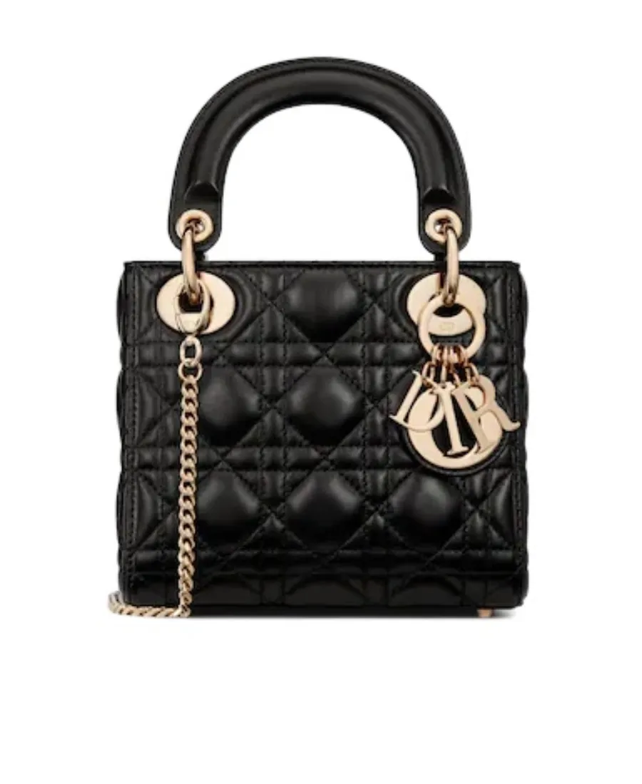 DescriptionThe logo shoulder bag reflects the brand's vision for elegance and beauty. This classic piece is exquisite and stylish, made of black lambskin and covered with rattan and checkered stitching to create a highly recognizable quilted texture. Light gold finished metal dior pendant embellishes and illuminates its silhouette. Equipped with detachable chain shoulder straps, it can be carried or cross-carried, making it an ideal companion for evening wear. Detachable chain. Internal zipper pocket. Handbags can be paired with different embroidered shoulder straps.