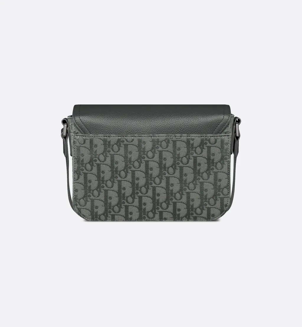 DescriptionThis compact messenger bag is crafted from anthracite gray dior oblique canvas with a satin effect and anthracite gray grained calfskin. It features a saddle flap closure with a contrasting aluminum buckle, a spacious interior, and a rear slip pocket. The adjustable strap allows for shoulder or crossbody wear.