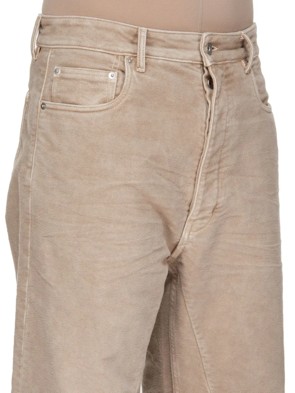 DescriptionBrushed cotton jeans in dirty pearl. These geth jeans feature a mid-rise and wide fit with a concealed zipper fly, five-pocket styling, and rear patch pockets. The mediumweight brushed cotton fabric is garment-dyed for a soft feel.