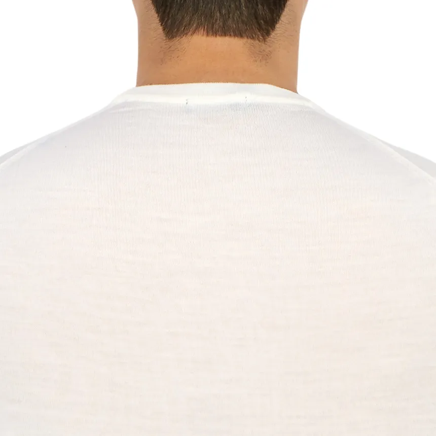 Merino wool sweater with a round neck and long sleeves. Features ribbed cuffs and hem. Unclosed (pullover) construction.