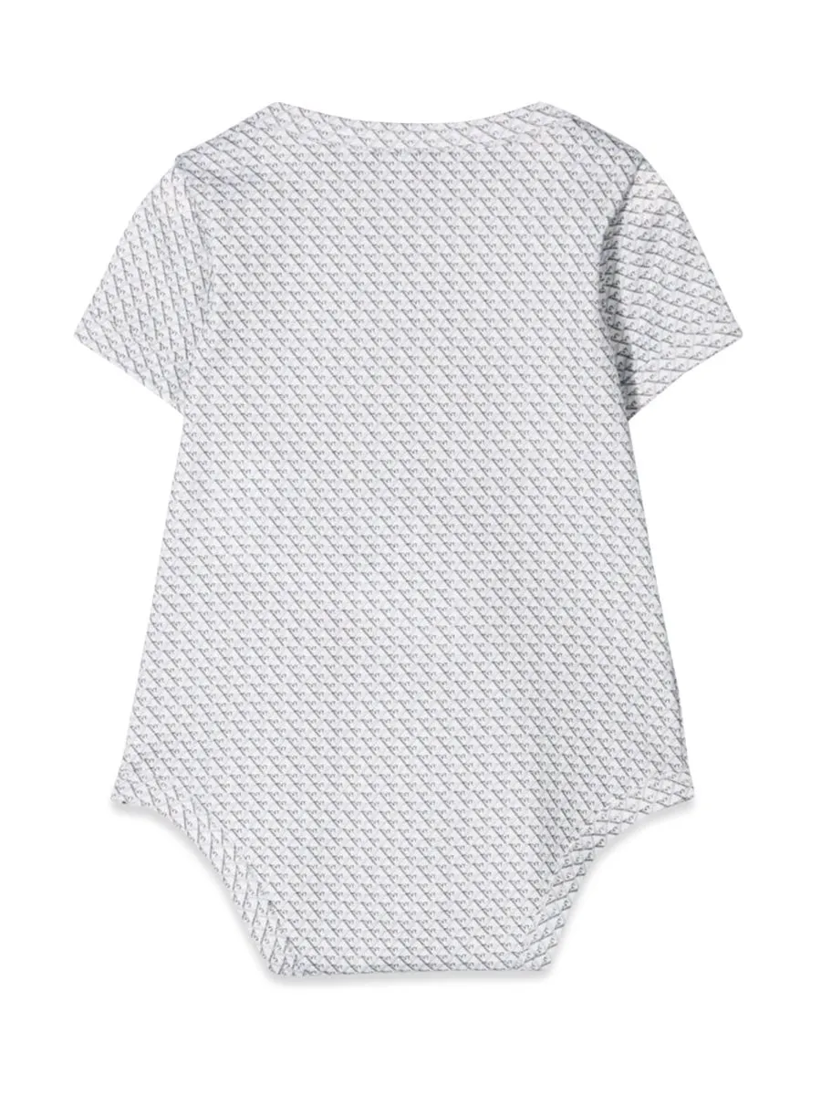 100% cotton bodysuits. Features a white bodysuit with emporio armani branding and a grey printed bodysuit. Made in italy.