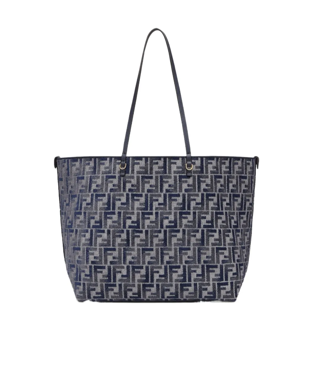 DescriptionFeatures a double-sided design decorated with the iconic ff pattern, with a dark blue gradient on one side and gray denim on the other. Equipped with a handle that can be carried or shoulder-backed, decorated with hand-sewn stitching.