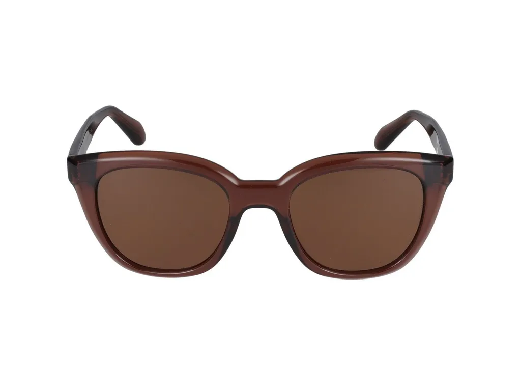 Classic sunglasses with a brown acetate frame and brown lenses. The frame has a subtle cat-eye shape and thick temples.