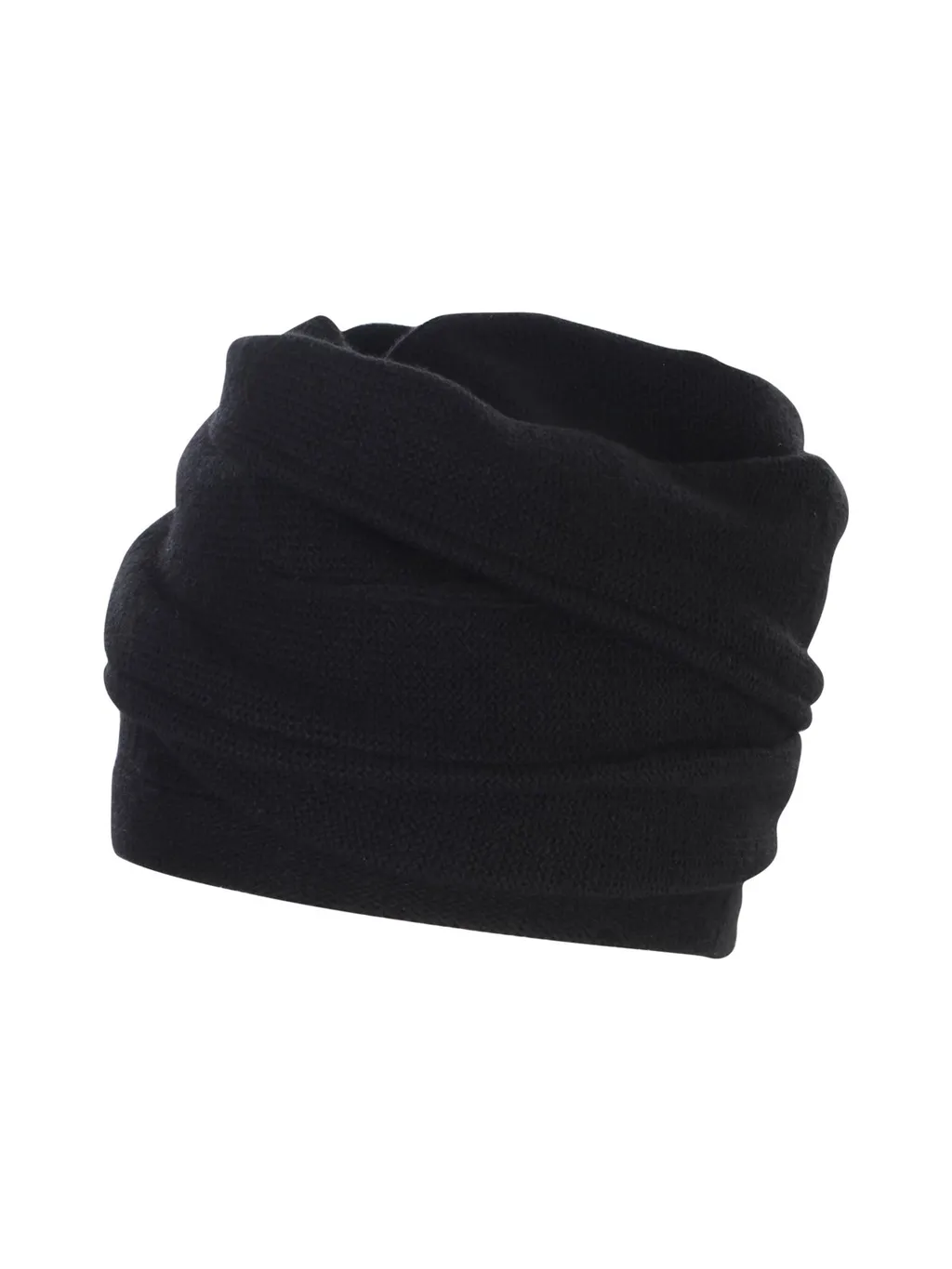 A black ribbed knit beanie with a folded brim. The beanie has a soft, textured appearance and is designed to be worn as headwear.