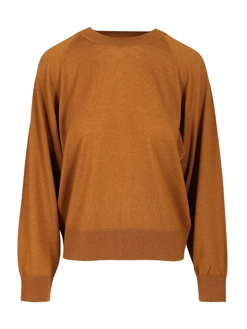 A long-sleeved crewneck sweater with a ribbed hem and cuffs. The sweater has a relaxed fit and raglan sleeves.