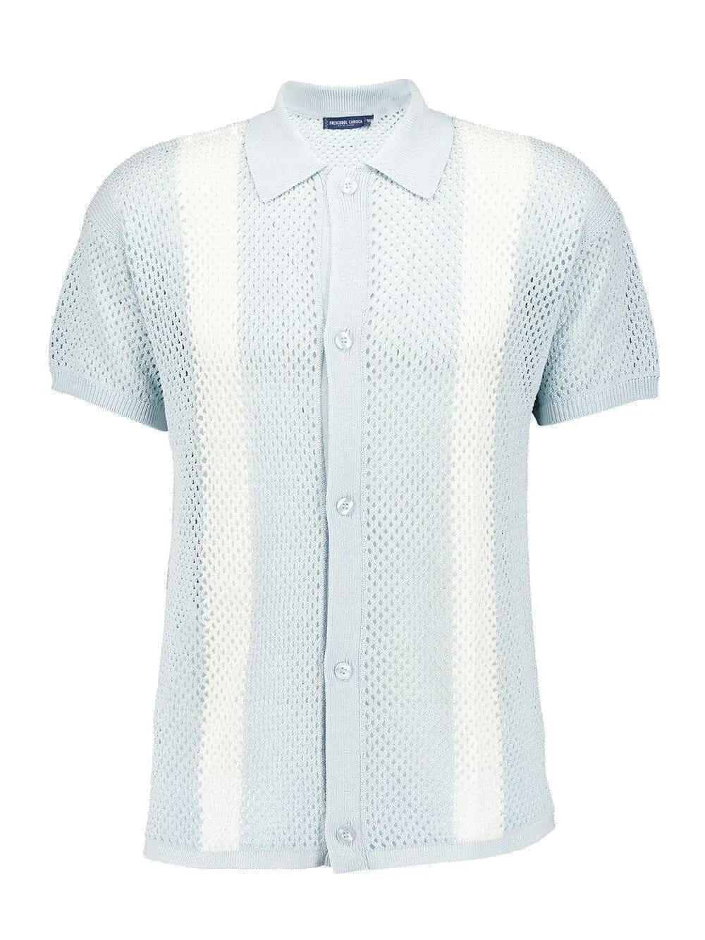 A crochet knit polo shirt in a cotton-polyamide blend with a relaxed fit. Features a classic collar, button placket, and short sleeves. Designed with vertical stripe detailing.
