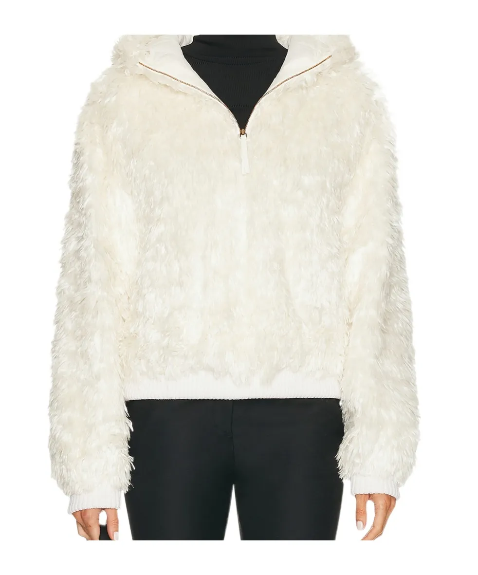 Lamb fur hoodie with a relaxed fit. Features a zippered closure and ribbed trim on cuffs and hem.