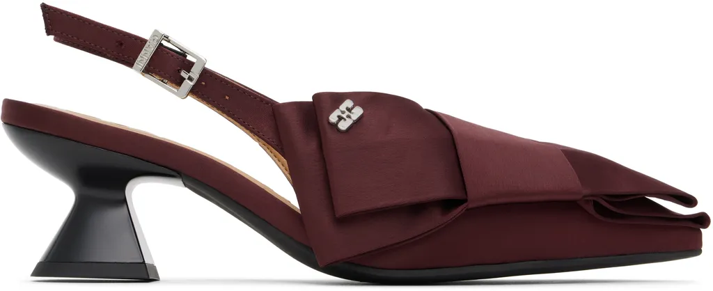 Ganni Burgundy Bow Kitten Heels | Wardatrobe