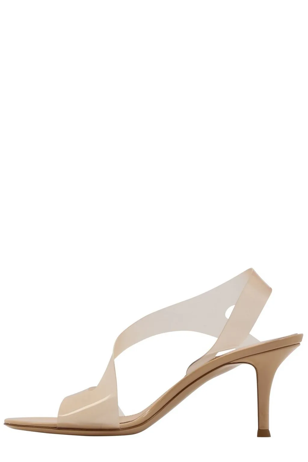 DescriptionThese gianvito rossi slingback sandals feature a minimalist design with transparent pvc straps crossing over the foot and a delicate slingback strap. They have a pointed toe and a stiletto heel. The sole is made of leather.
