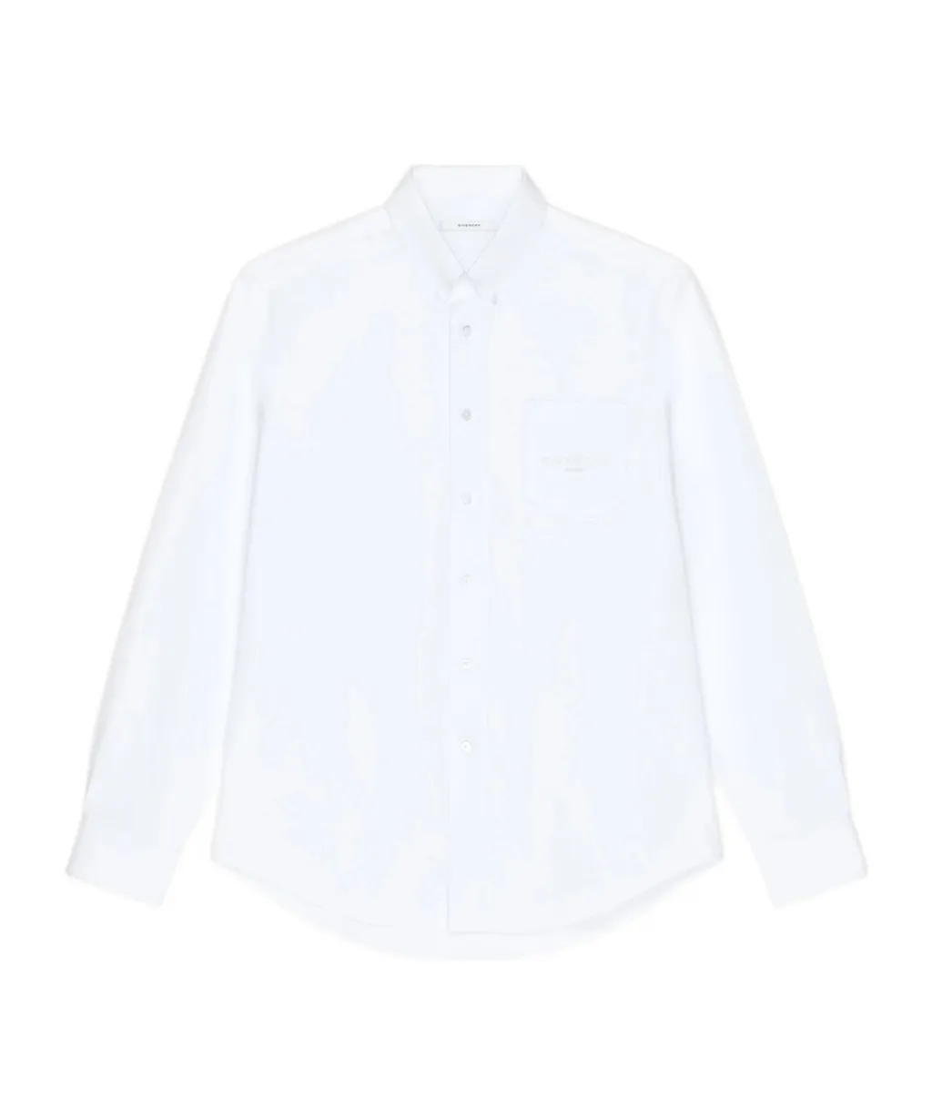 Cotton oxford shirt with a regular fit. Features a classic collar, a chest pocket with givenchy paris jacquard fabric, and button closures with button cuffs.