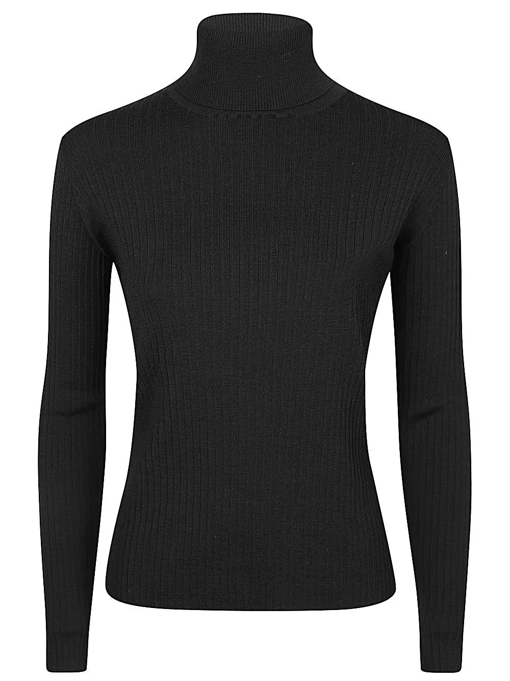 A long-sleeved, ribbed turtleneck sweater with a fitted silhouette.