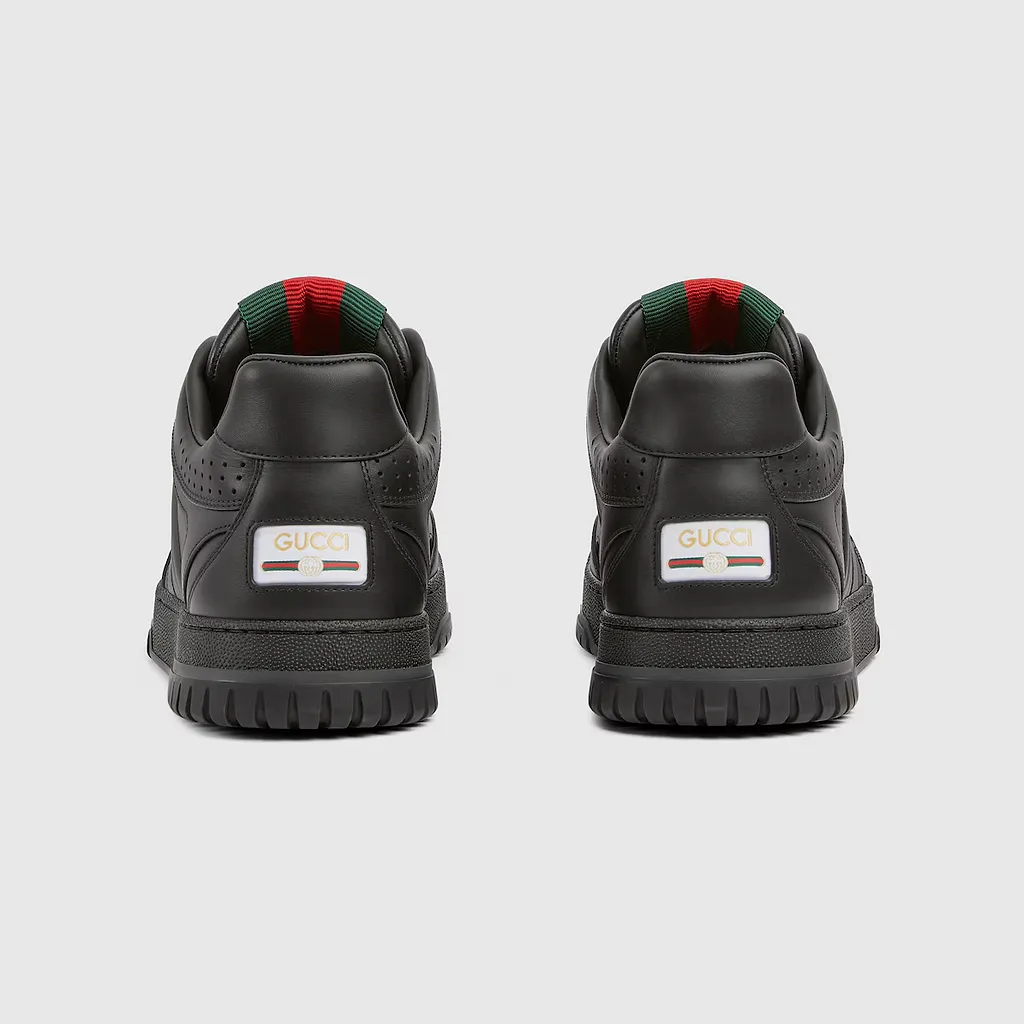 DescriptionThe re-web sees gucci’s heritage stripes as a bold statement detail on a contemporary silhouette. This pair is crafted from black leather. Defined by multiple signature details, this new trainer takes centre stage with the bold green and red web tongue.
