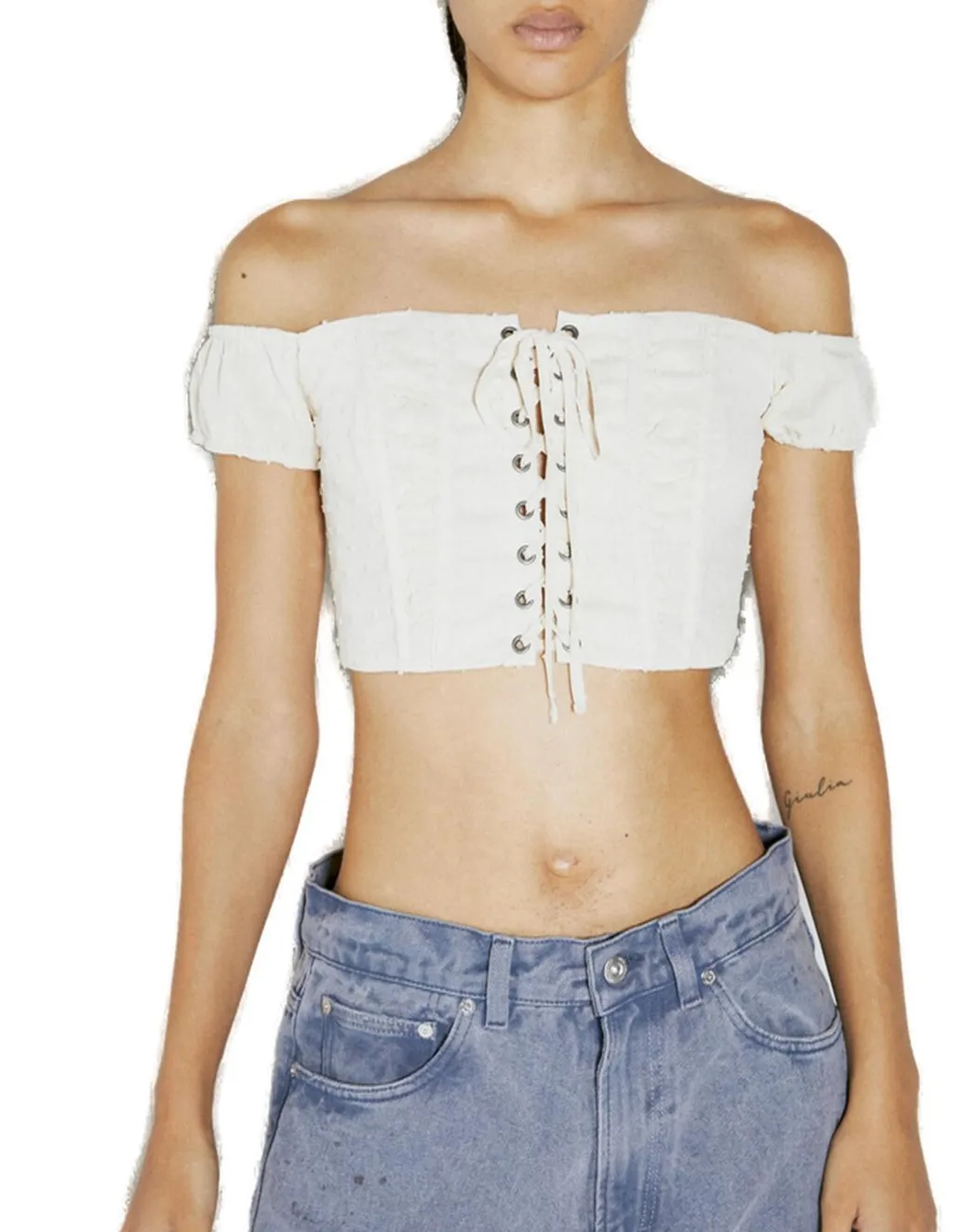 Guess Off-The-Shoulder Lace-Up Crop Top | Wardatrobe