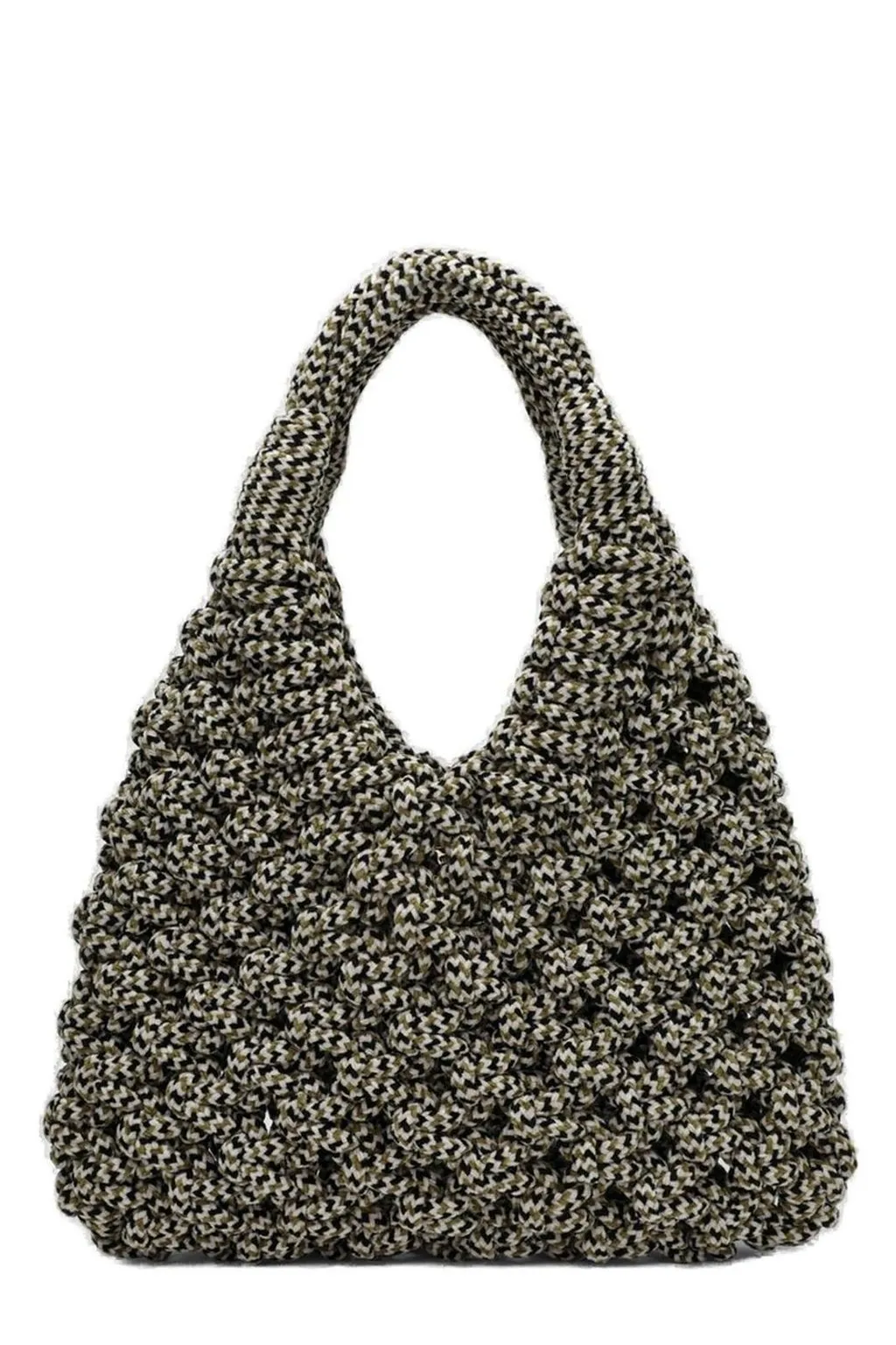 A slouchy shoulder bag with a braided texture. It has a single top handle and a curved silhouette.