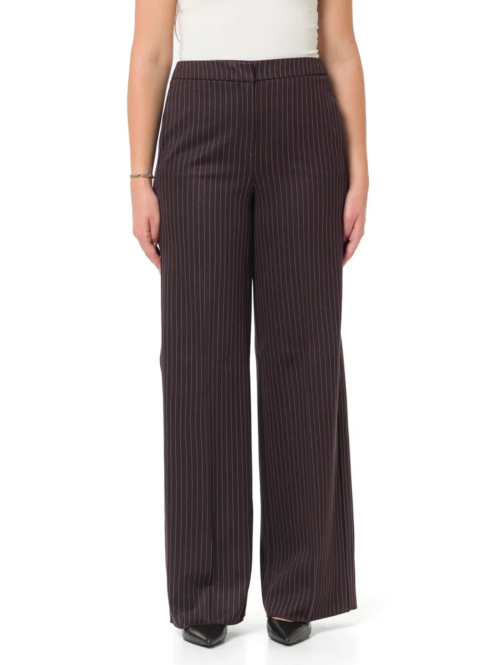 DescriptionHigh-waisted wide-leg pants with a classic pinstripe pattern. Features a tailored fit with a flat front and a subtle pleat detail. The silhouette is designed to be both elegant and comfortable, making them suitable for both professional and casual settings.