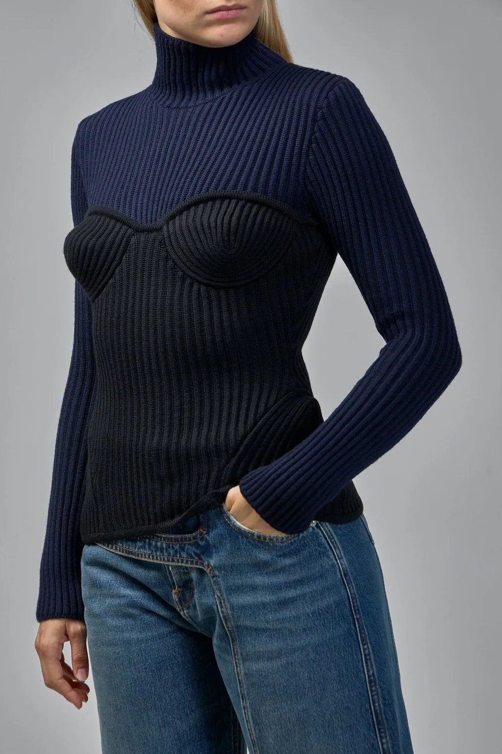 Jean Paul Gaultier Ribbed Turtleneck Sweater With Corset Detail | Wardatrobe