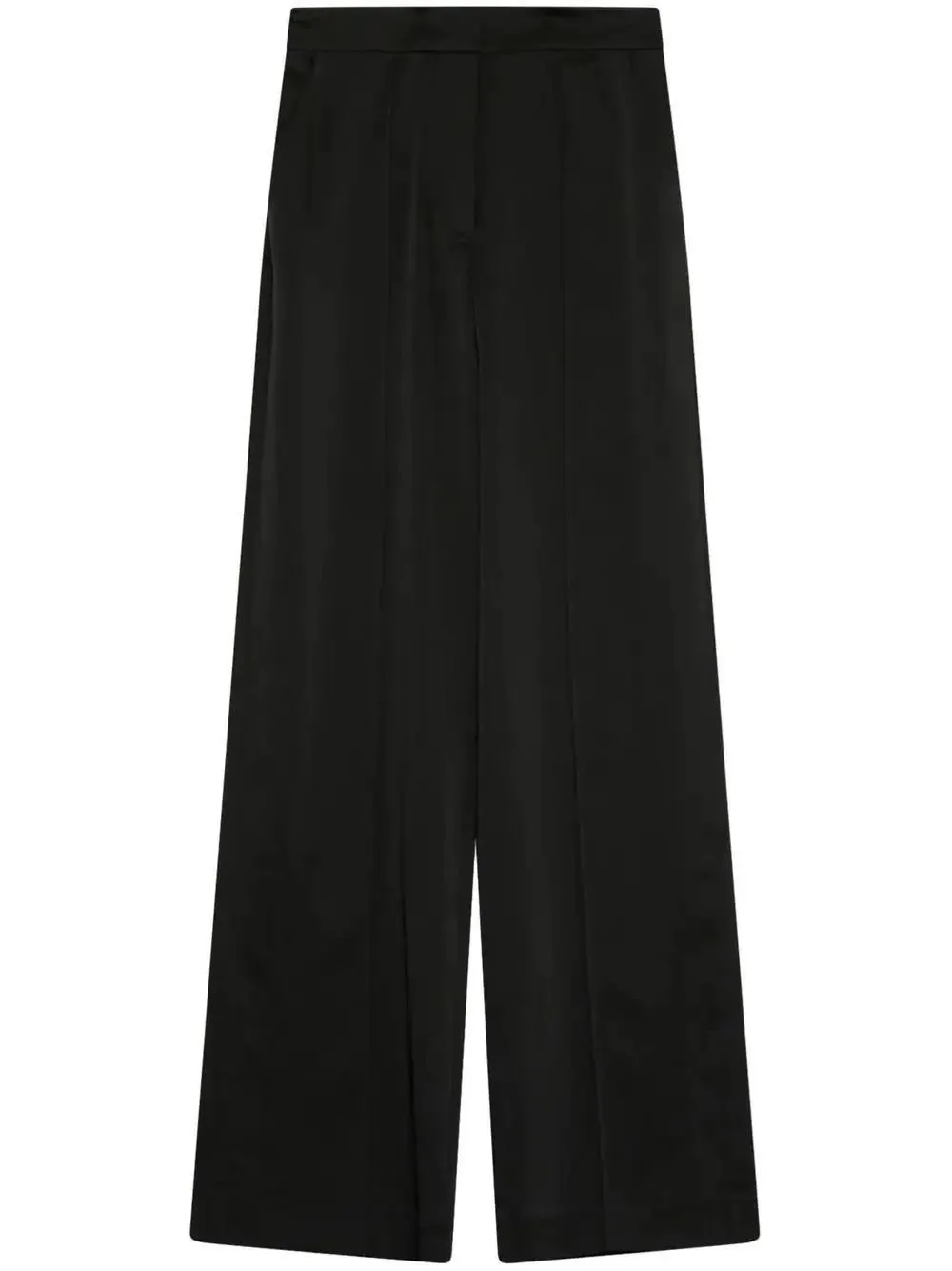 High-waisted, wide-leg trousers with a relaxed fit. Features a clean waistband and a full-length silhouette. The design includes subtle vertical seams for a tailored look.