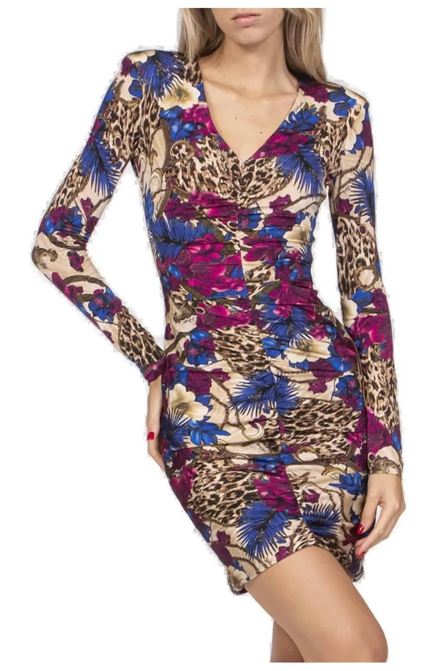 Just Cavalli Ruched V-Neck Long Sleeve Dress | Wardatrobe