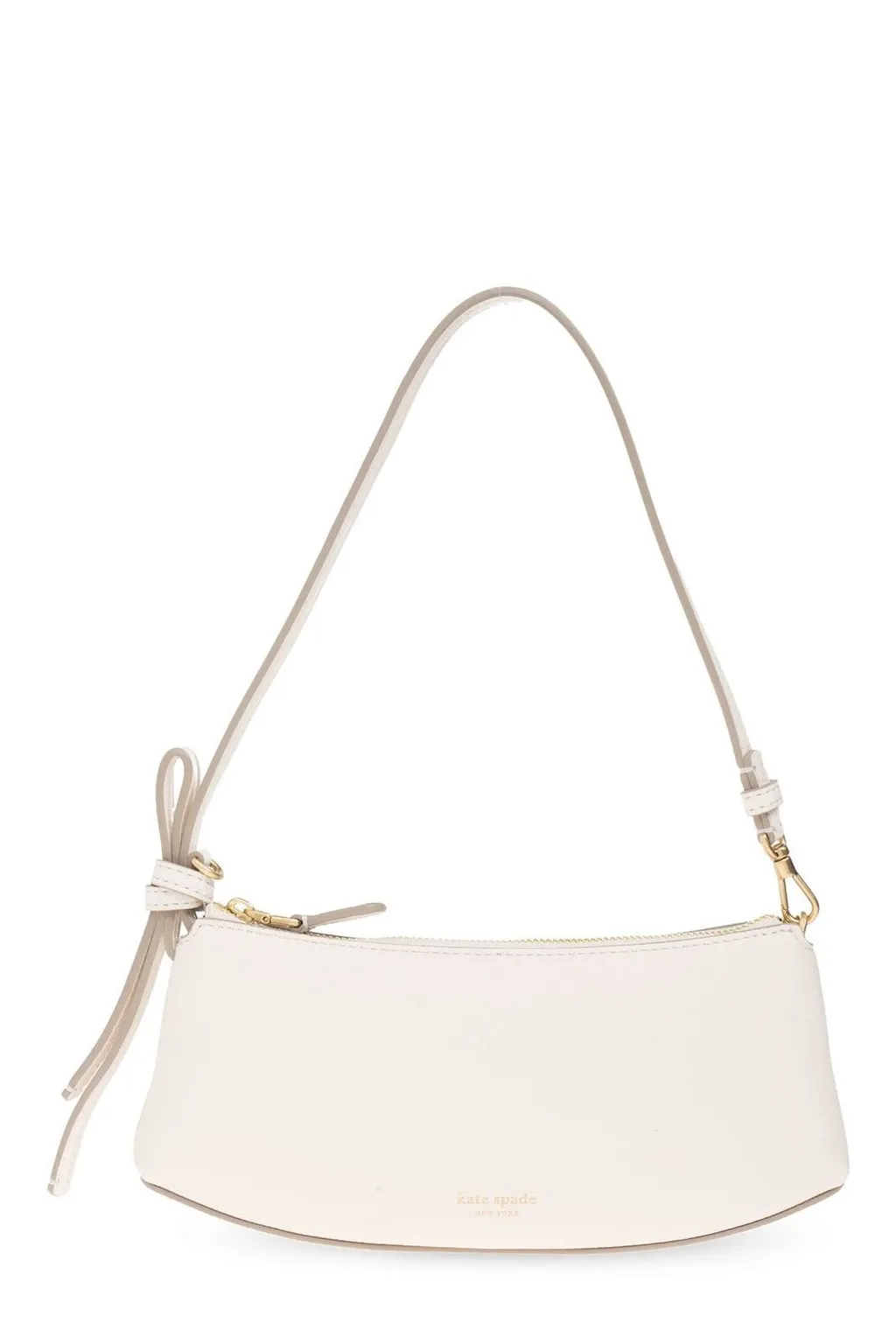 A small, curved shoulder bag with a single adjustable strap. It features a zip-top closure and a small knotted detail on the strap.
