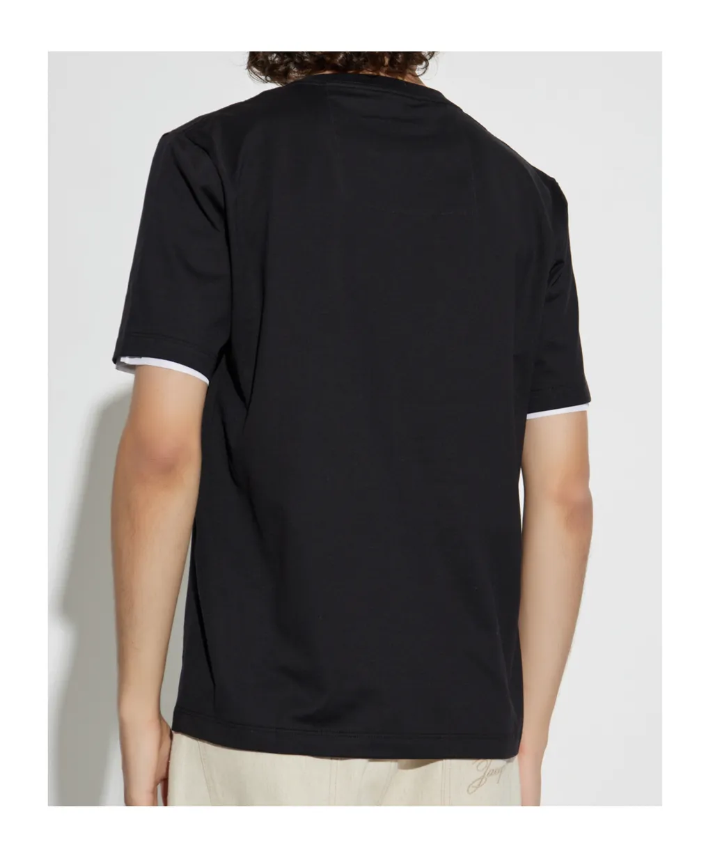 This black t-shirt features a round neck, short sleeves, and a straight hem. It is decorated with an embroidered brand logo.