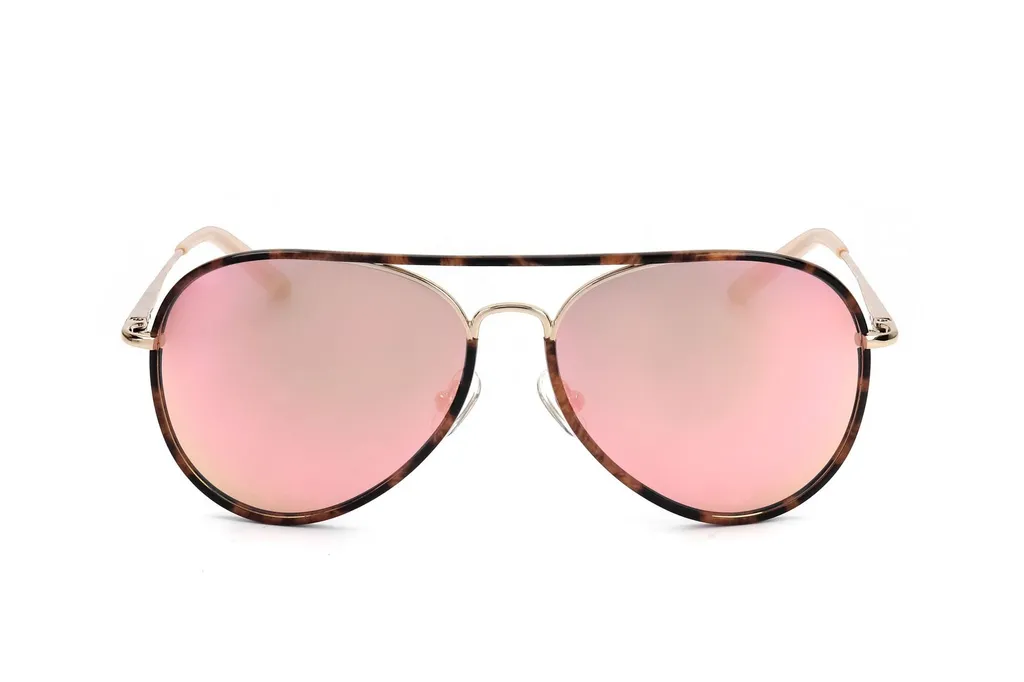 Aviator sunglasses with a tortoiseshell frame and pink mirrored lenses. The frame features a double bridge and thin metal temples.