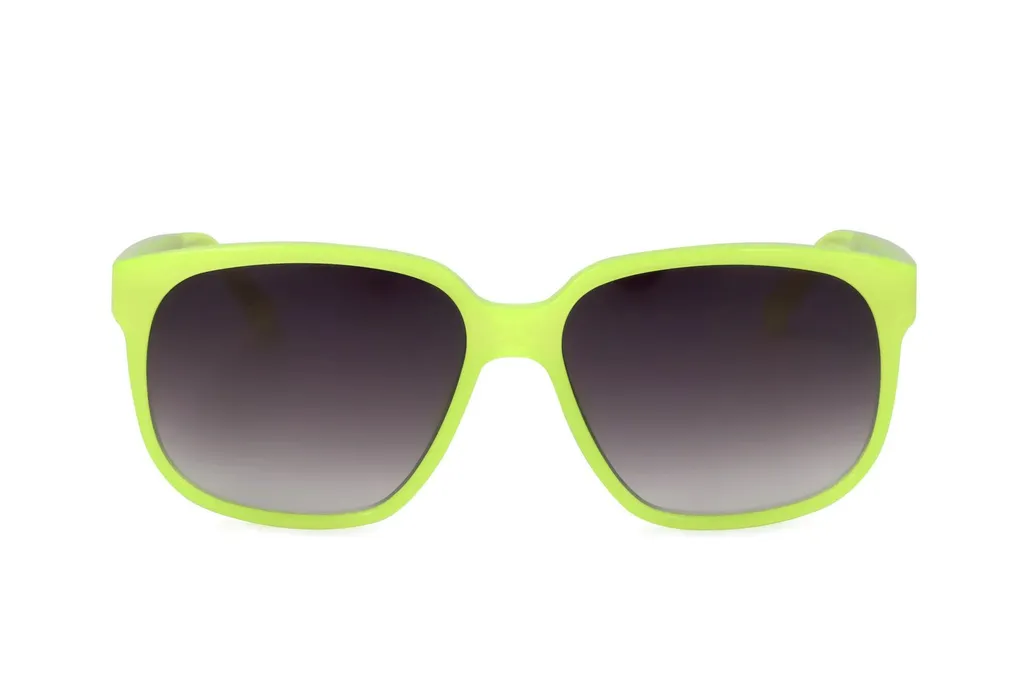 Rectangular sunglasses with a thick, matte yellow frame and gradient gray lenses.